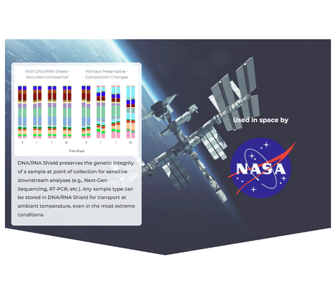 DNA/RNA Shield can be used on a wide variety of sample types including cells, tissues, biological fluids (plasma, serum, saliva, urine), and environmental samples (feces, plants, swabs, etc.).