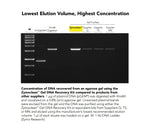 - Column design permits DNA elution at high concentrations into minimal volumes.